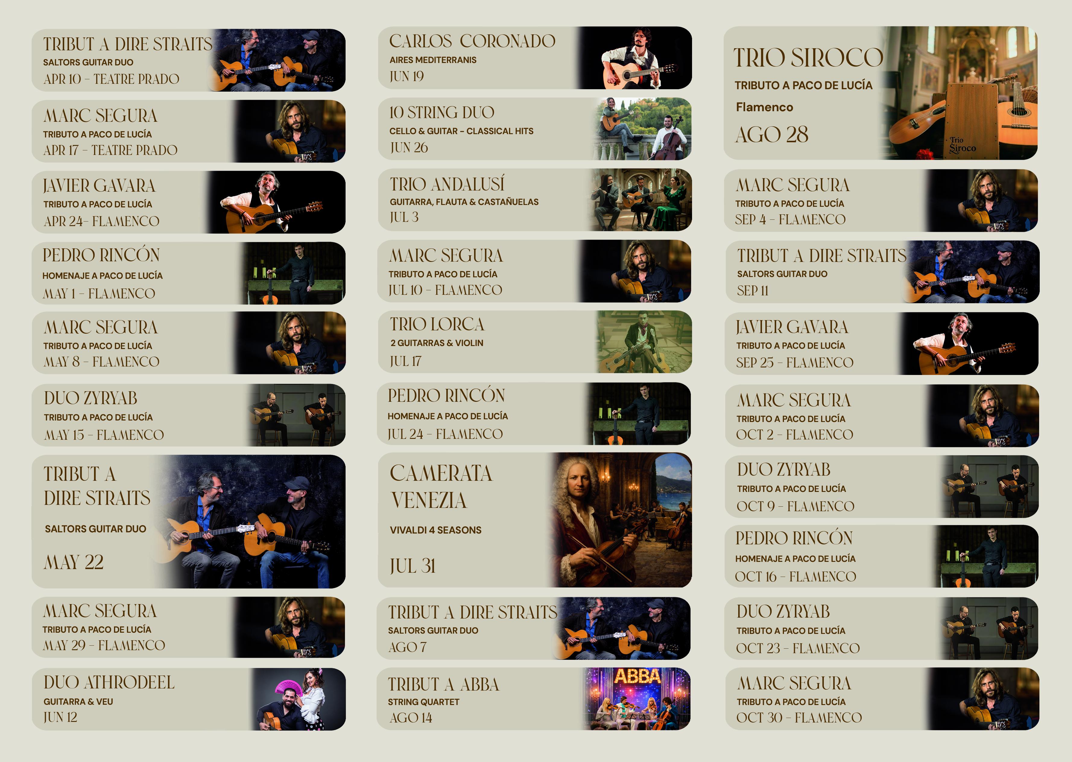 Del 29 de març al 30 d'octubre. Concerts de guitarra espanyola